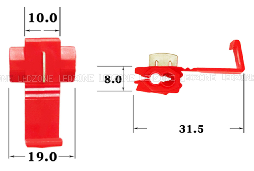 คลิปสายไฟ 1 ออก 2 สีแดง  รับกระแสไฟฟ้าได้ 10A สำหรับสายไฟสายไฟ 0.5-1.0 ตร.มม.